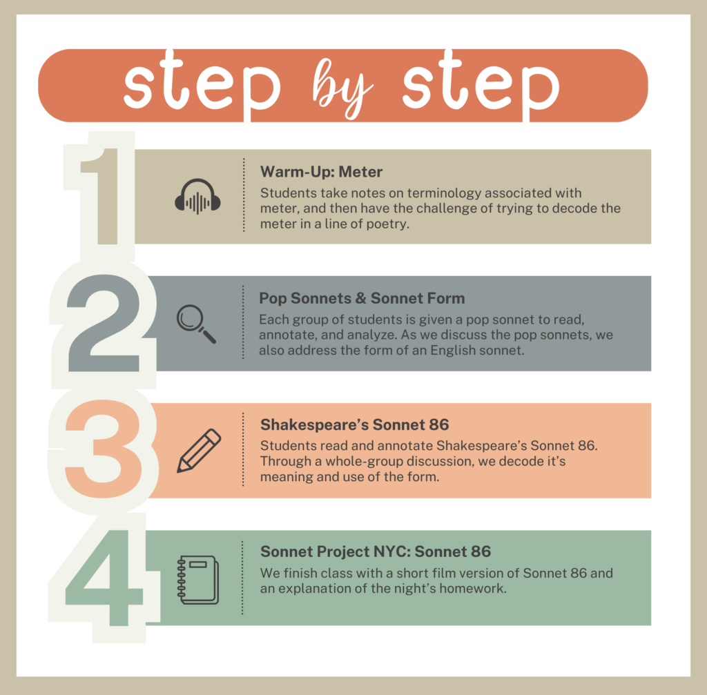 A portion of today’s lesson also involves trickery, through the use of pop sonnets. I love them and I think it adds engagement to the study of the sonnet.