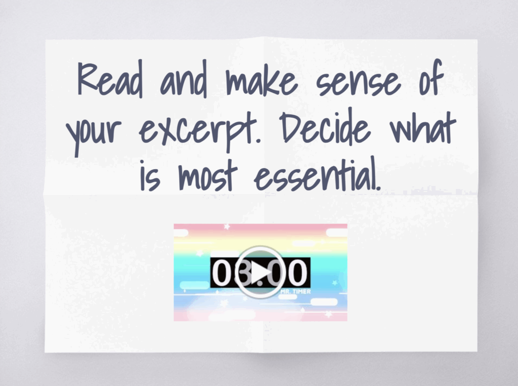 As a group, students read the scene to make sense of it. I give them three minutes with these instructions: