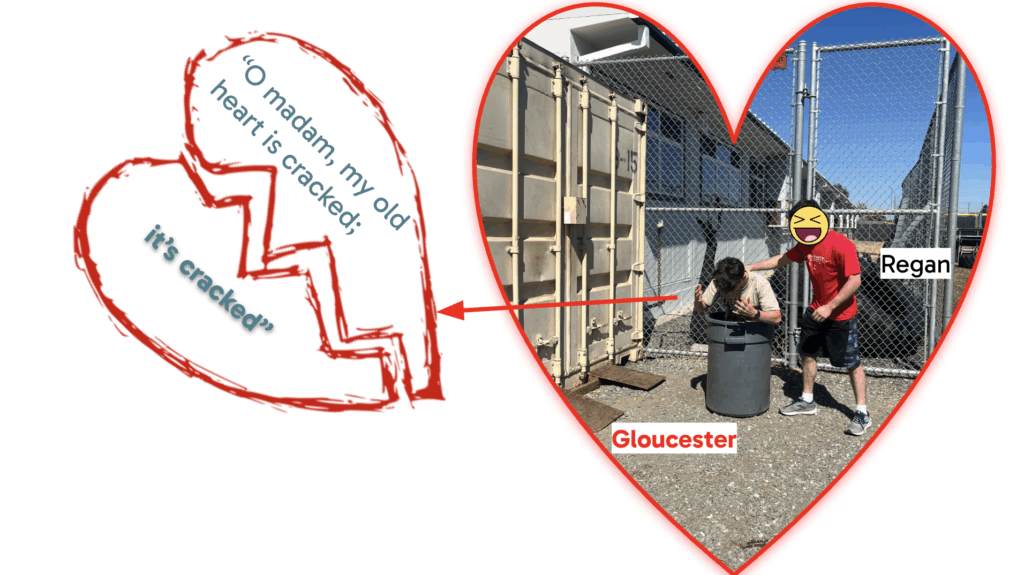 Arrange students into groups and give each group a mini-scene. I typically have 32-34 students in class, so I created 11 mini-scenes so that students would mostly work in groups of three. If you’re using this idea for Act II of Lear, you can borrow my scenes here (will force copy).